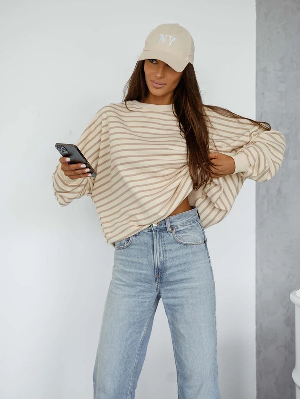 Bluza oversize Stripe w cappucino paski
