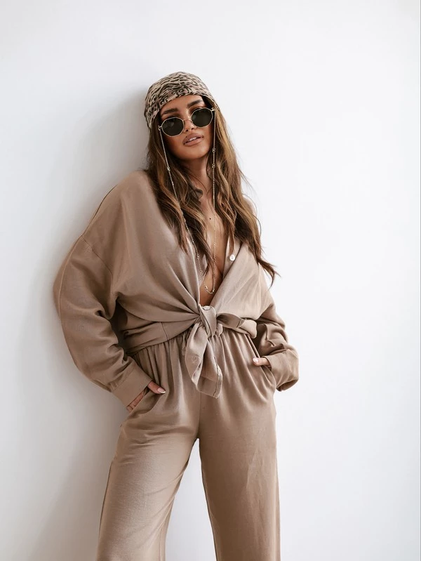 Welurowy komplet dresowy z asymetrycznym dekoltem My STYLE