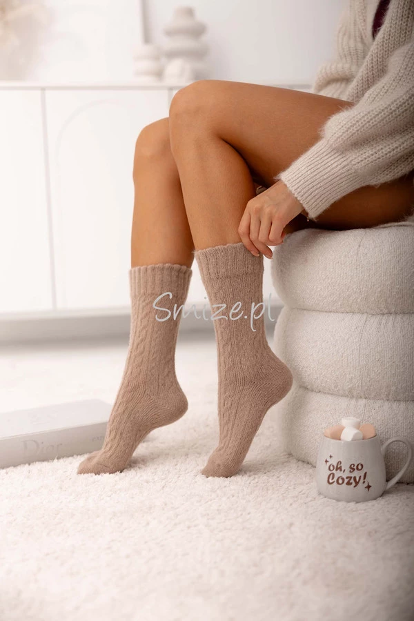 Skarpetki z angory, wzór warkocz, beżowe