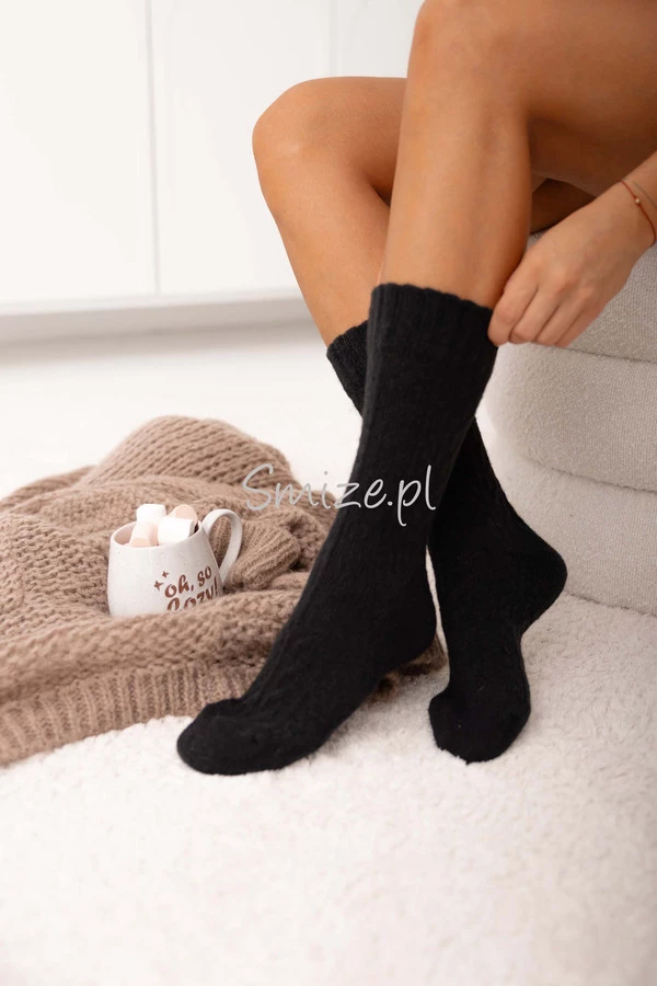 Skarpetki z angory, wzór warkocz, czarne