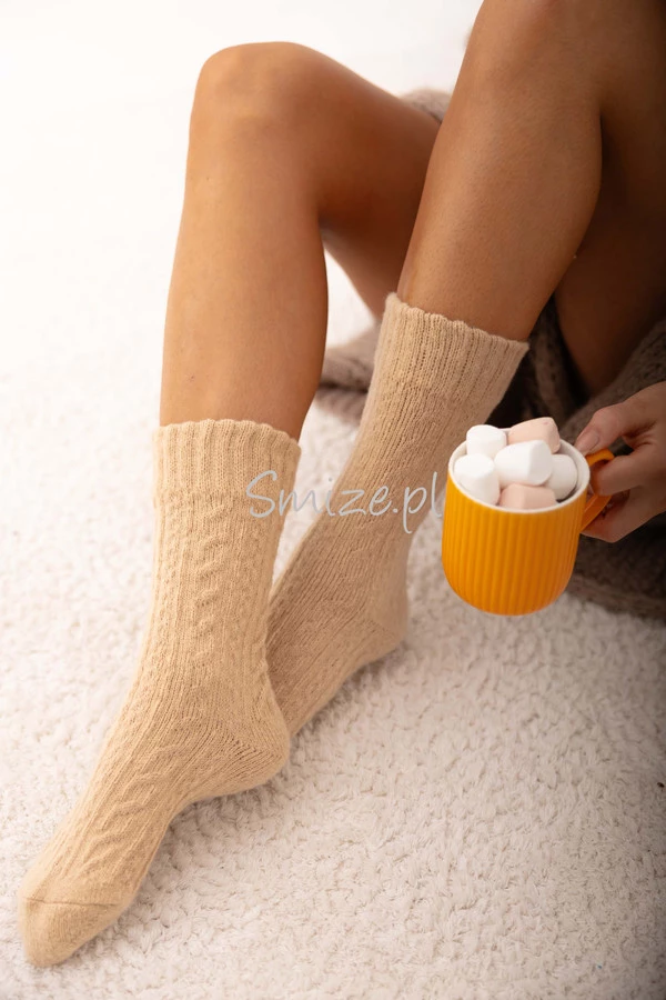 Skarpetki z angory, szerszy prążek, kamienny beż