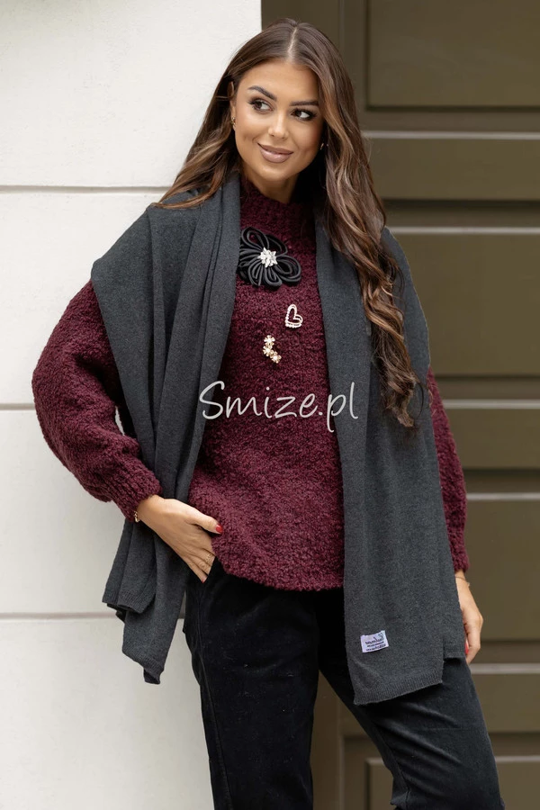 Komplet kaszmirowy grafitowy, szal z czapką CASHMERE