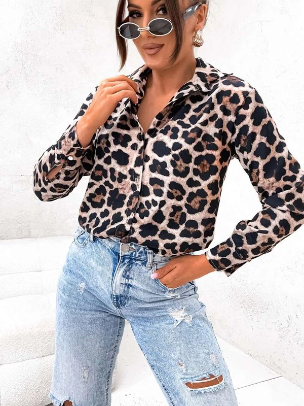 Bluzka koszulowa z printem w panterkę