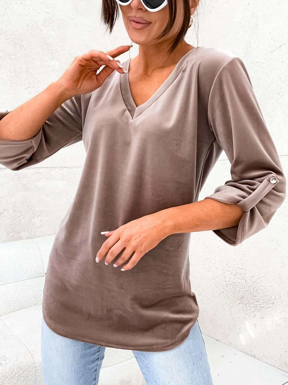 Welurowy komplet dresowy z dekoltem w serek V-style