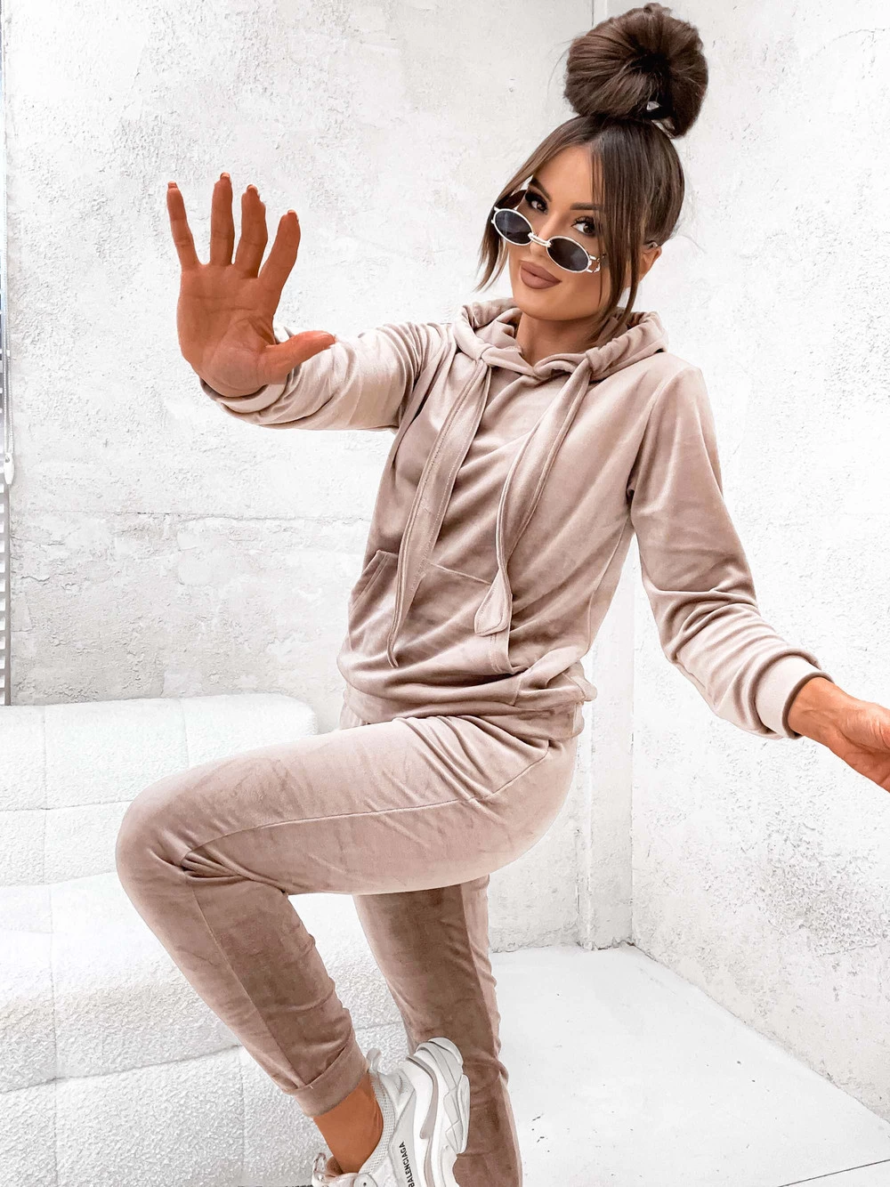 Bawełniana Bluza damska z kapturem, w cappucino paski