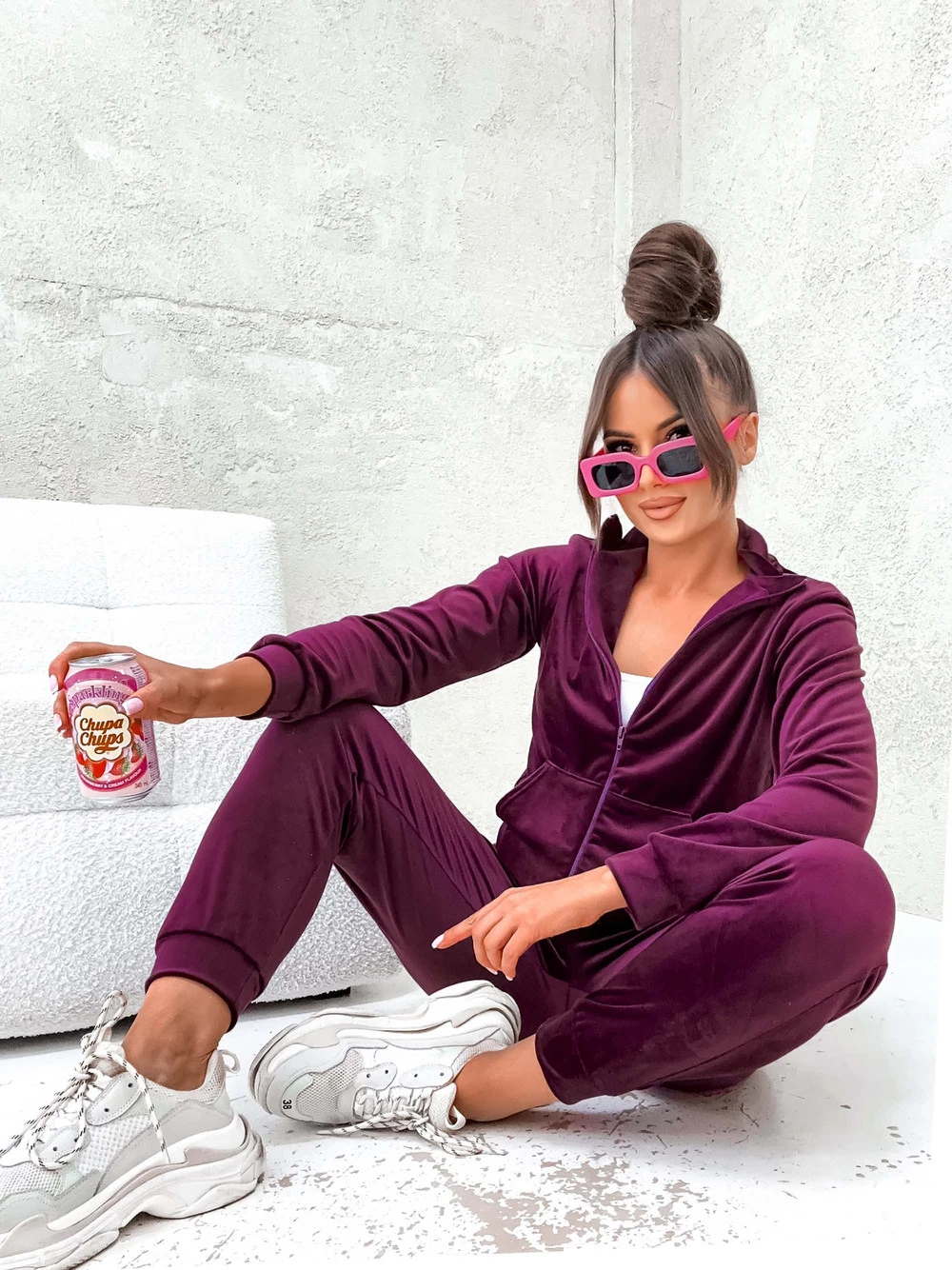 Welurowy komplet dresowy z rozpinaną bluzą bez kaptura Classy