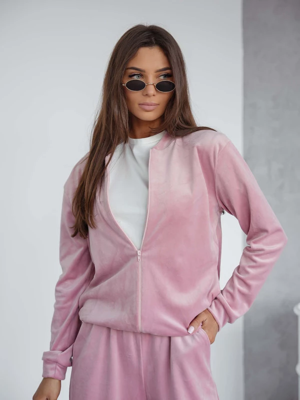Welurowy komplet dresowy z rozpinaną bluzą bez kaptura Classy Size Plus