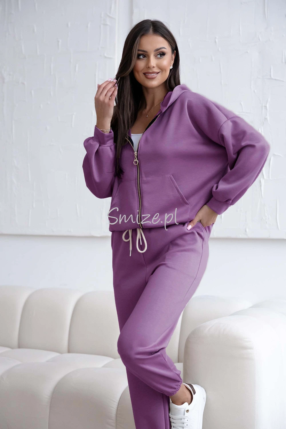 Komplet dresowy z wiskozy, masełkowy z rozpinaną bluzą, wrzosowy