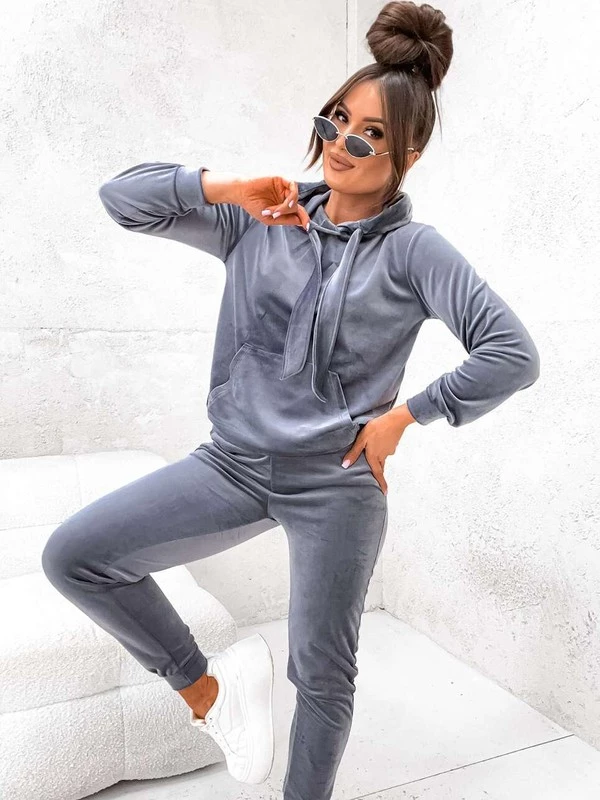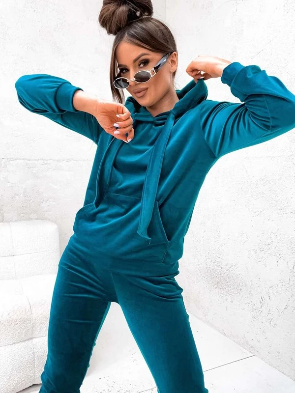 Welurowy komplet dresowy z rozpinaną bluzą bez kaptura Classy Size Plus