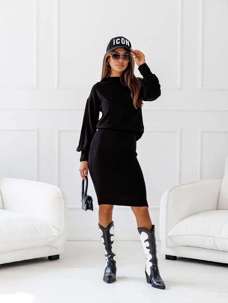 Komplet Swetrowa Bluza w paski i sukienka CLAUDIA