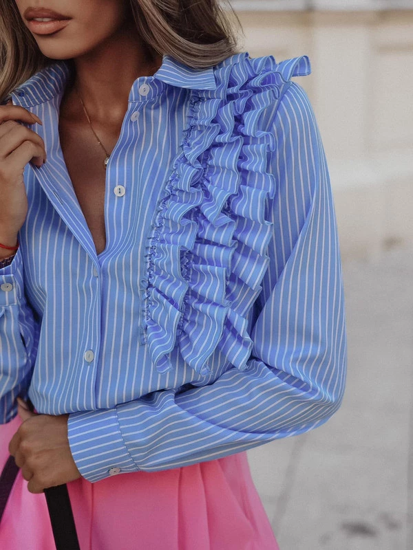 Bawełniana koszula FRILLw paski z falbanami Simplicity