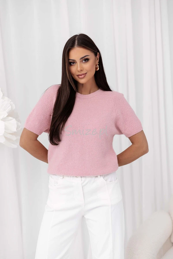 Sweter baby alpaka z dzwonkowymi rękawami, pudrowy róż