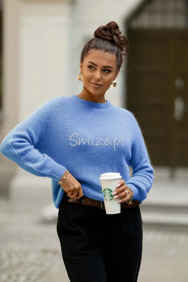 Sweter z golfem baby alpaka, błękitny