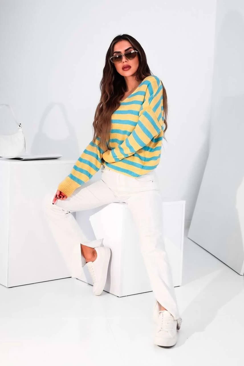 Bawełniany sweter z dekoltem w serek ALICANTE Madame Sue
