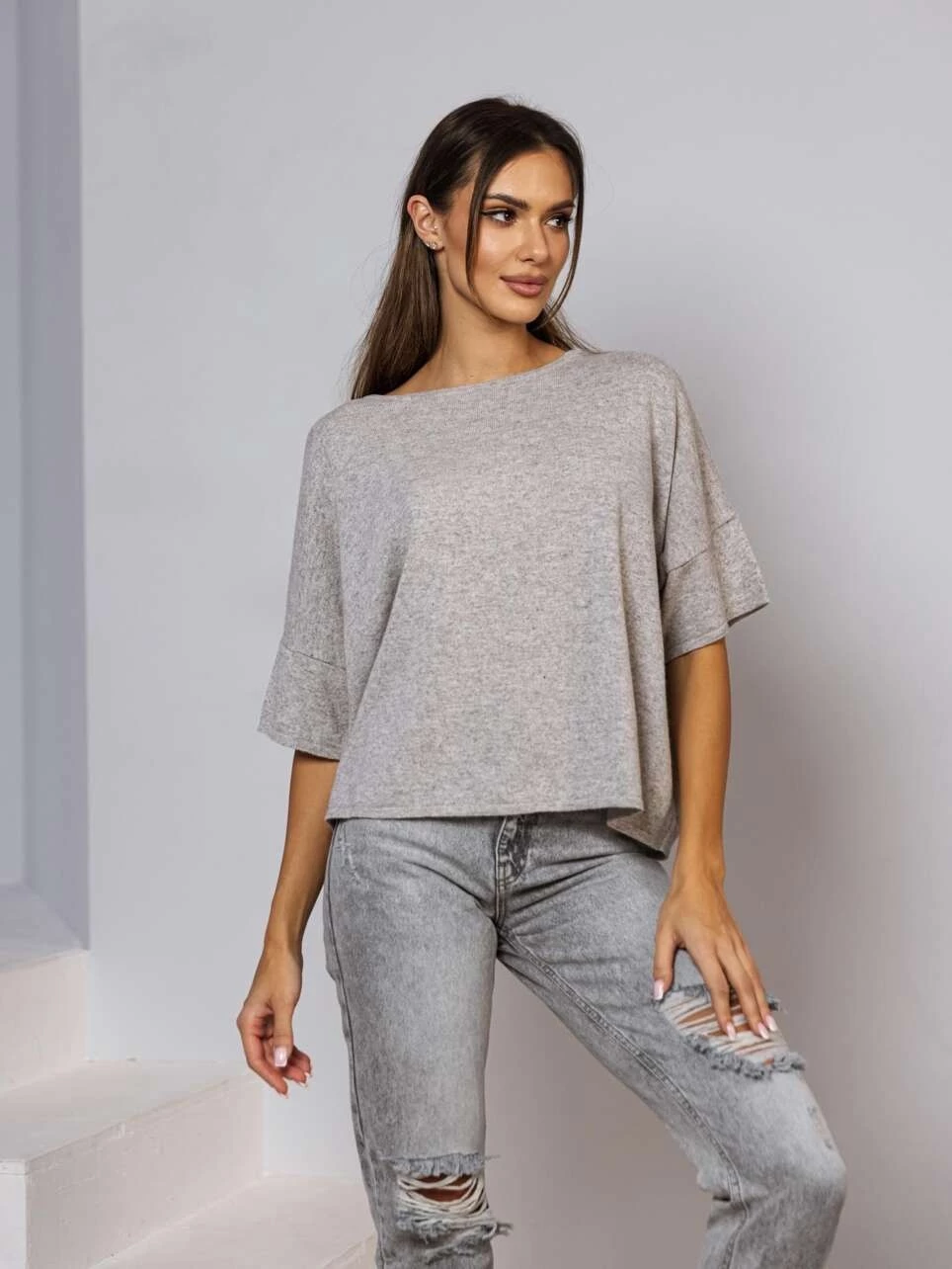 Sweter damski wełna moher premium Sisi Madame Sue, chabrowy