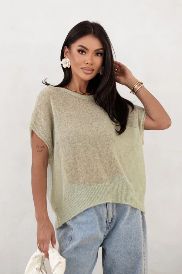 Sweter damski z krótkim rękawem LIVIA, alpaka superfine Madame Sue