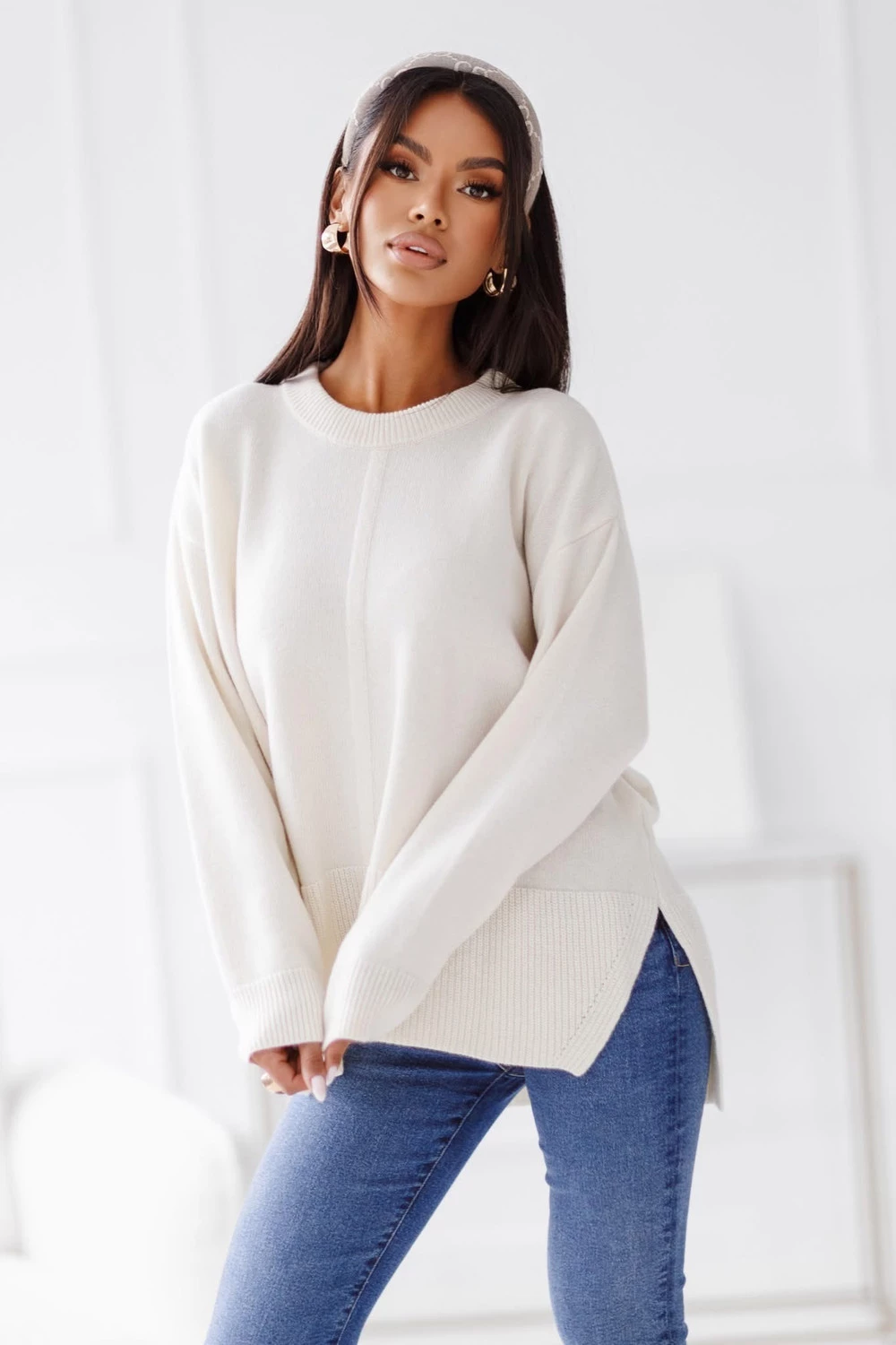 Sweter damski wełniany LUNA ecru Madame Sue