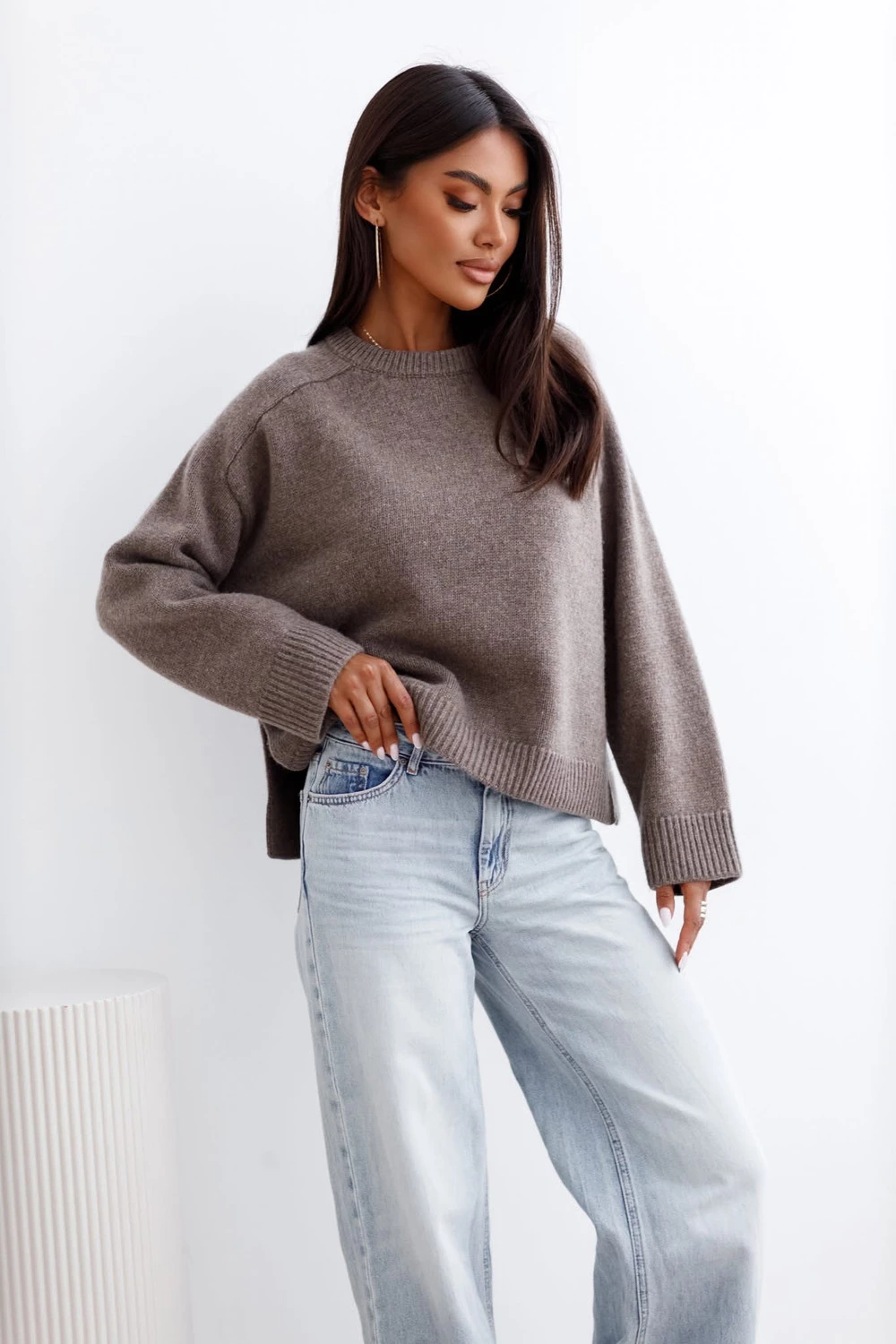 Sweter z półgolfem DAFNE mokka, baby alpaka i wełna z merynosa Madame Sue