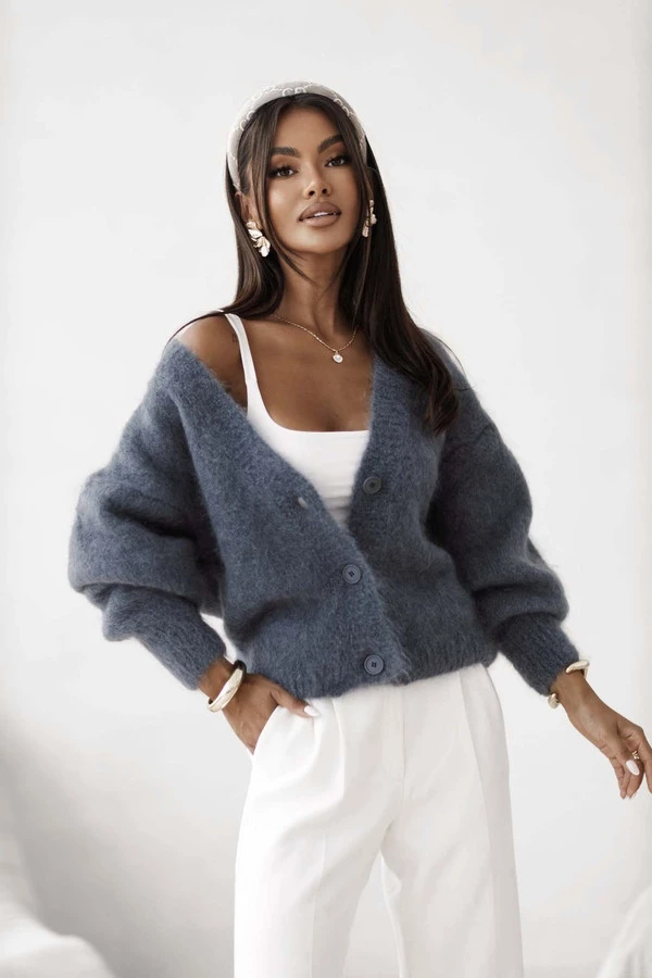 Sweter damski wełna moher premium LISS chabrowy Madame Sue