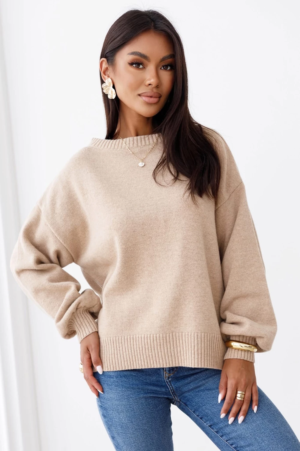 Sweter damski wełna moher premium LISS brudny puder Madame Sue