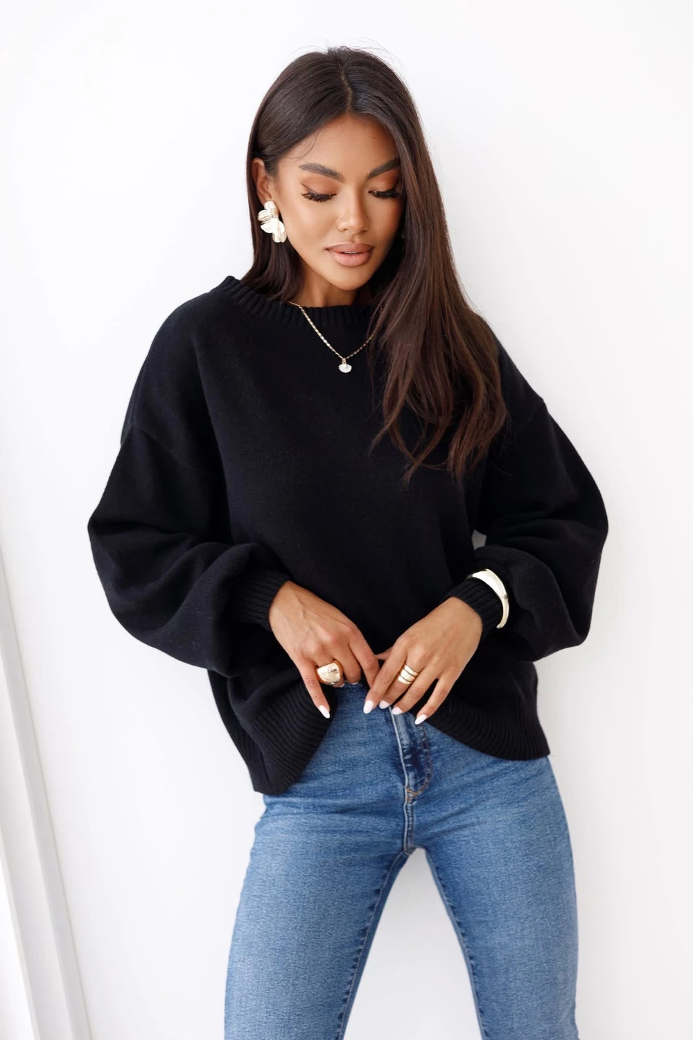 Sweter HERA czarny, baby alpaka i wełna merynosa Madame Sue