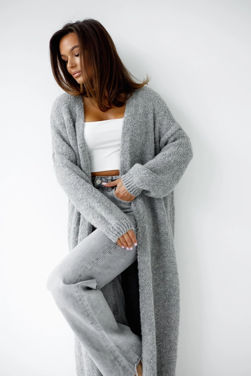 Sweter rozpinany, baby alpaka z broszką, czekoladowy