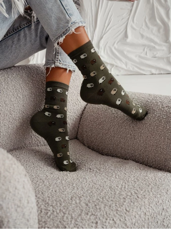 Skarpetki z angory, wzór warkocz, fango