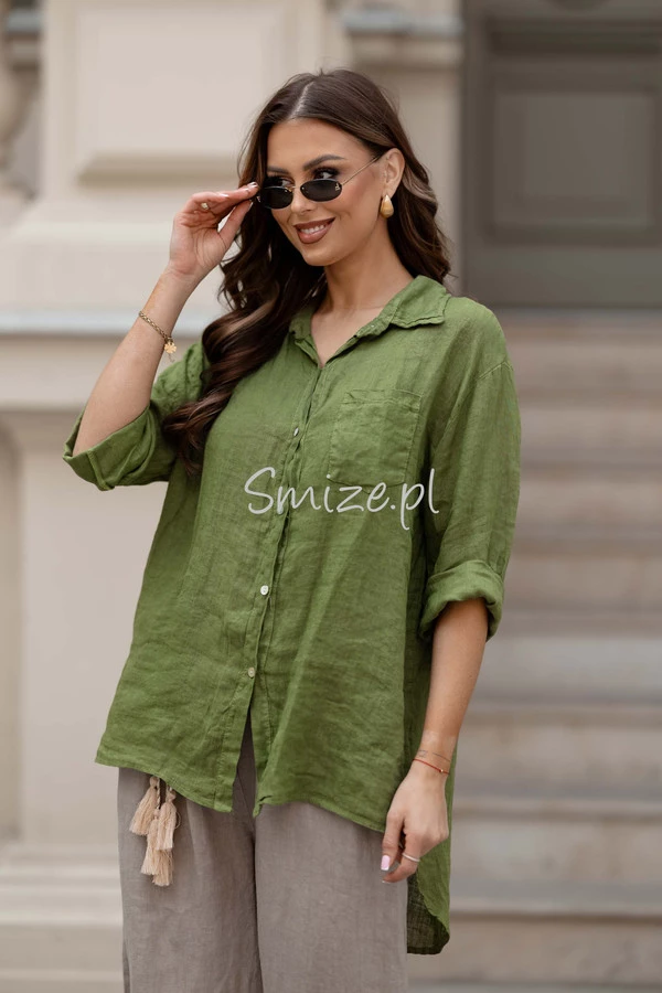 Dłuższa lniana koszula z jedną kieszonką