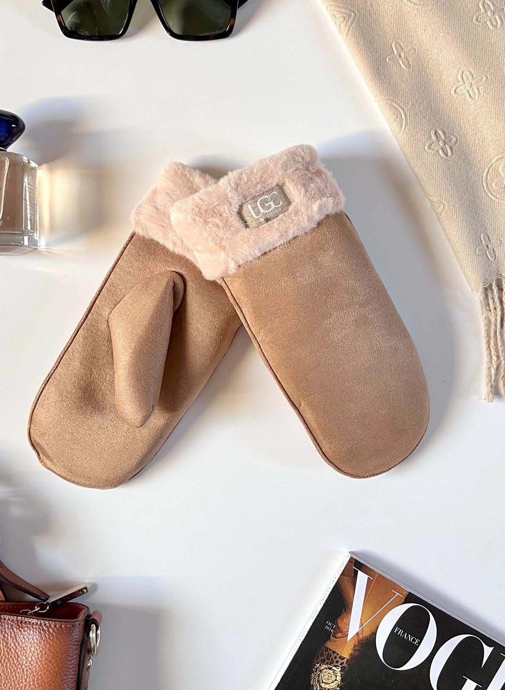 Rękawiczki pięciopalczaste z futerkiem, camel