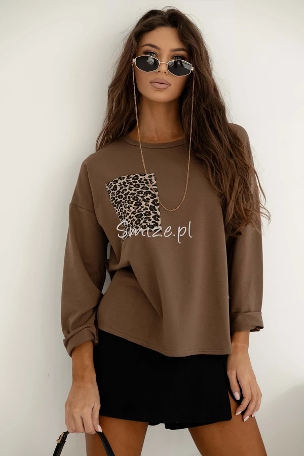 Bluzka damska z długim rękawem, kieszeń w panterkę Smize