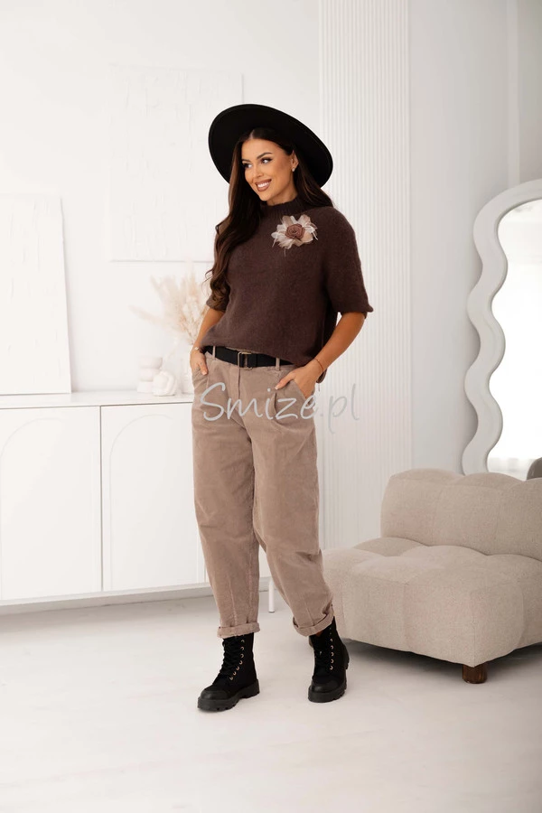 Damskie spodnie sztruksowe balloon, czekoladowe