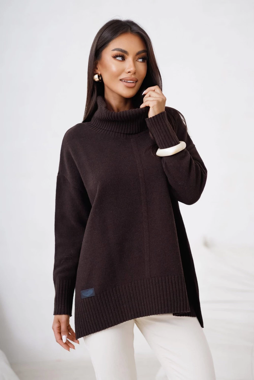 Sweter damski wełniany golf JOSE Madame Sue, czekoladowy