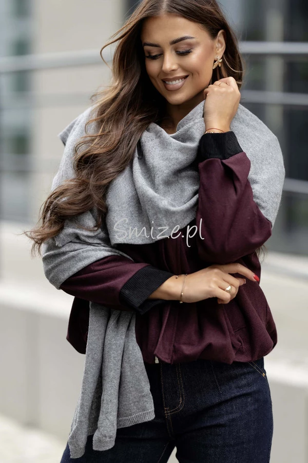 Komplet kaszmirowy bordowy, szal z czapką CASHMERE