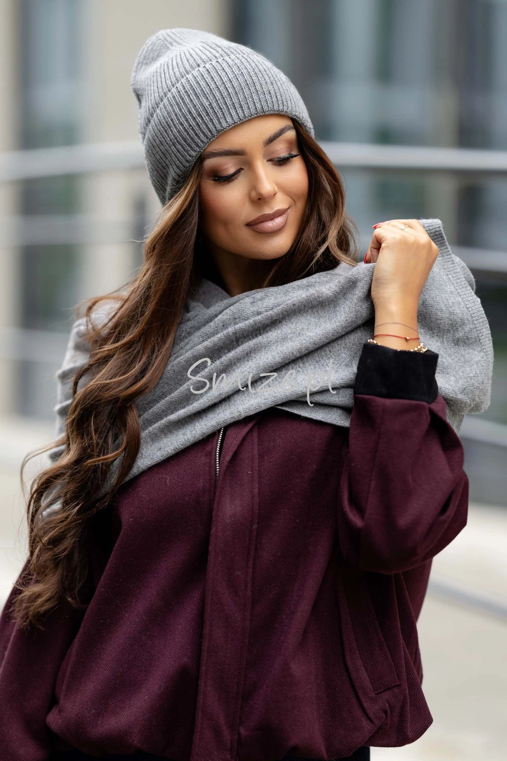 Komplet kaszmirowy szary, szal z czapką CASHMERE