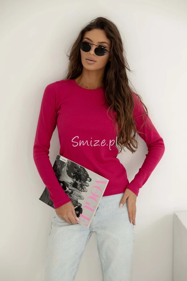 Bluzka z długim rękawem, basic z prążkowanej bawełny