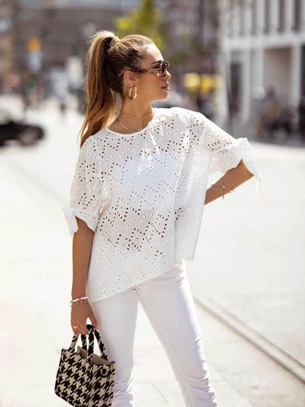 Haftowana Bluzka z bufiastymi rękawami