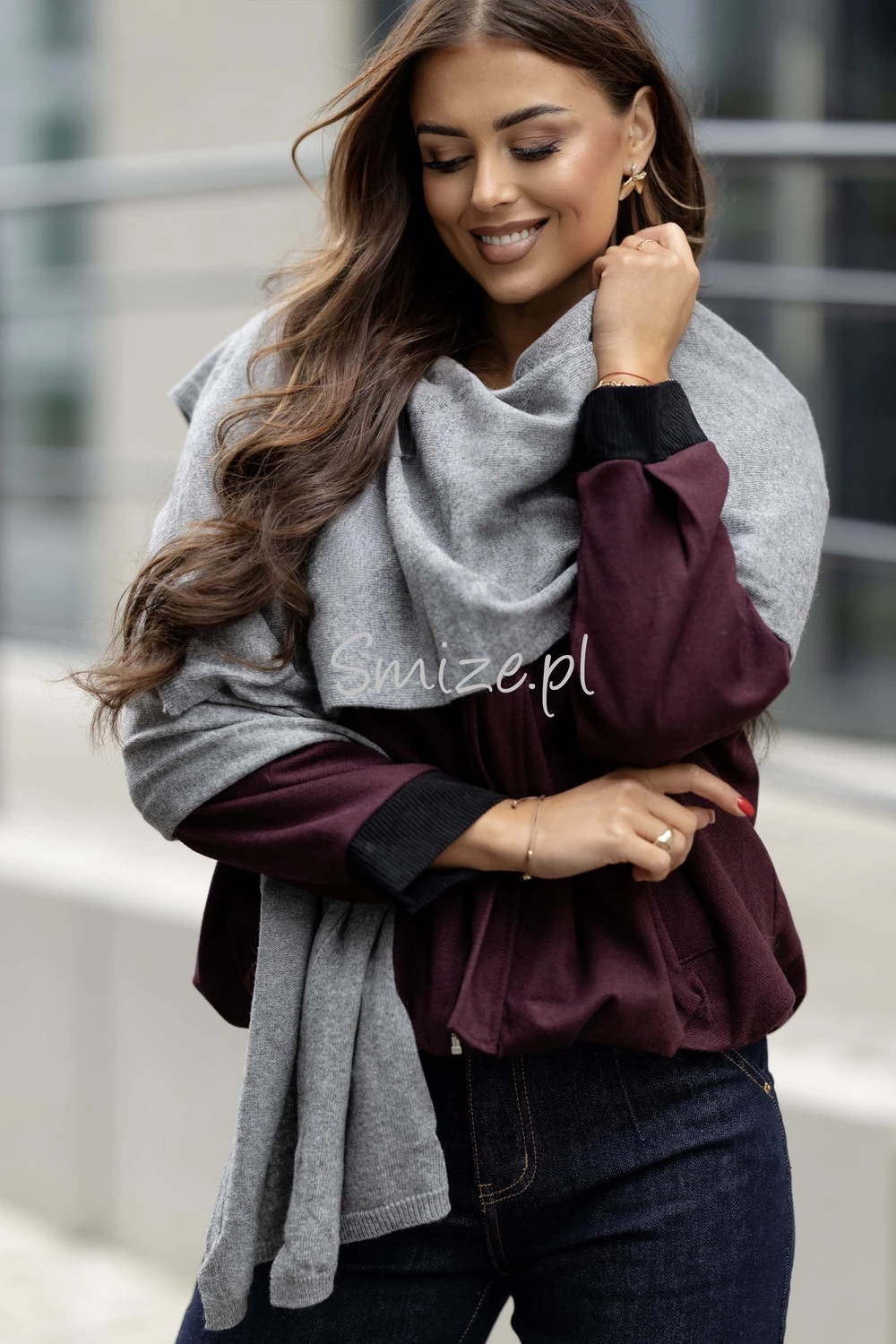 Komplet damski z angorą, szal z czapką z jenotem ciemny szary