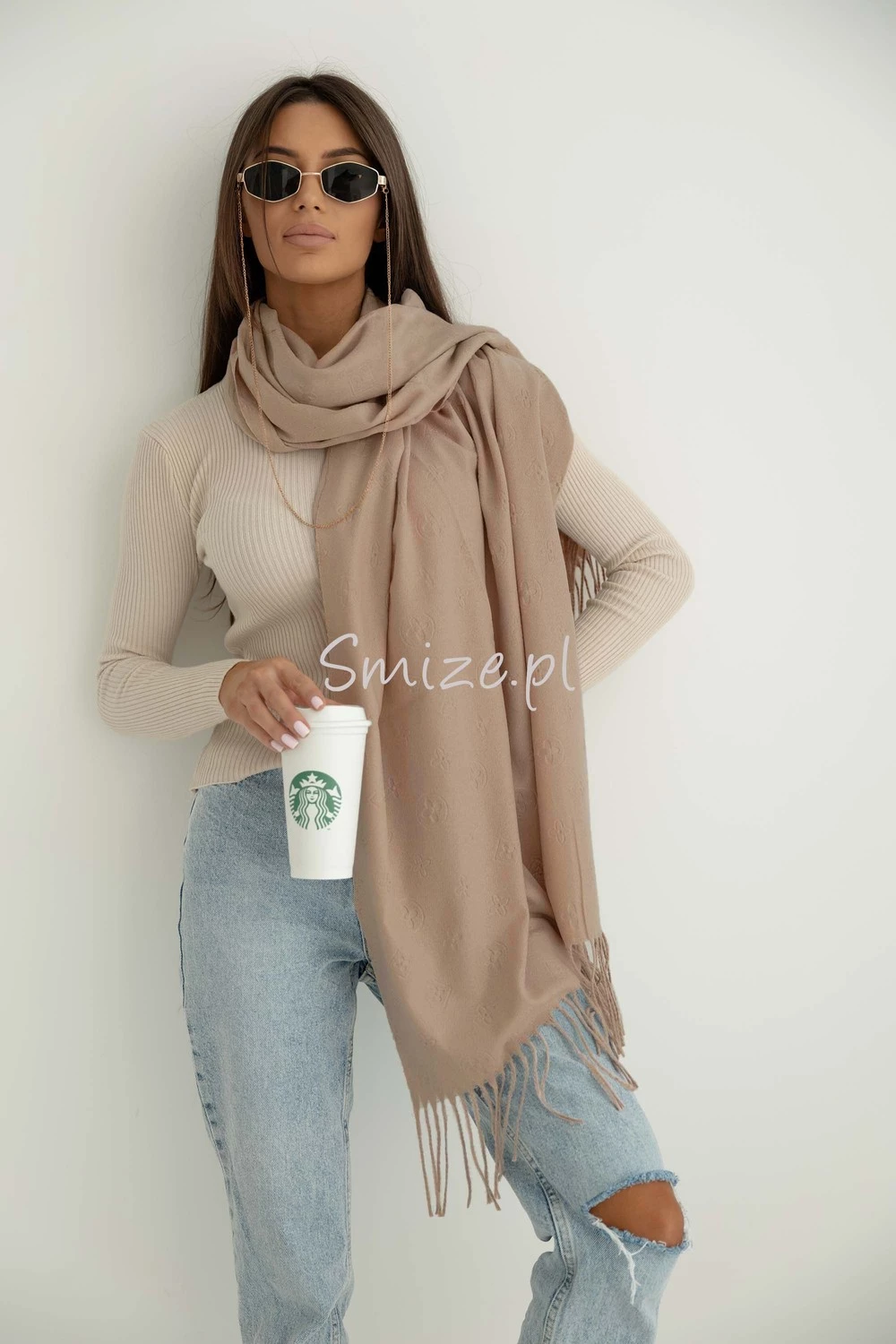 Szal damski gładki z tłoczonym wzorem Livi