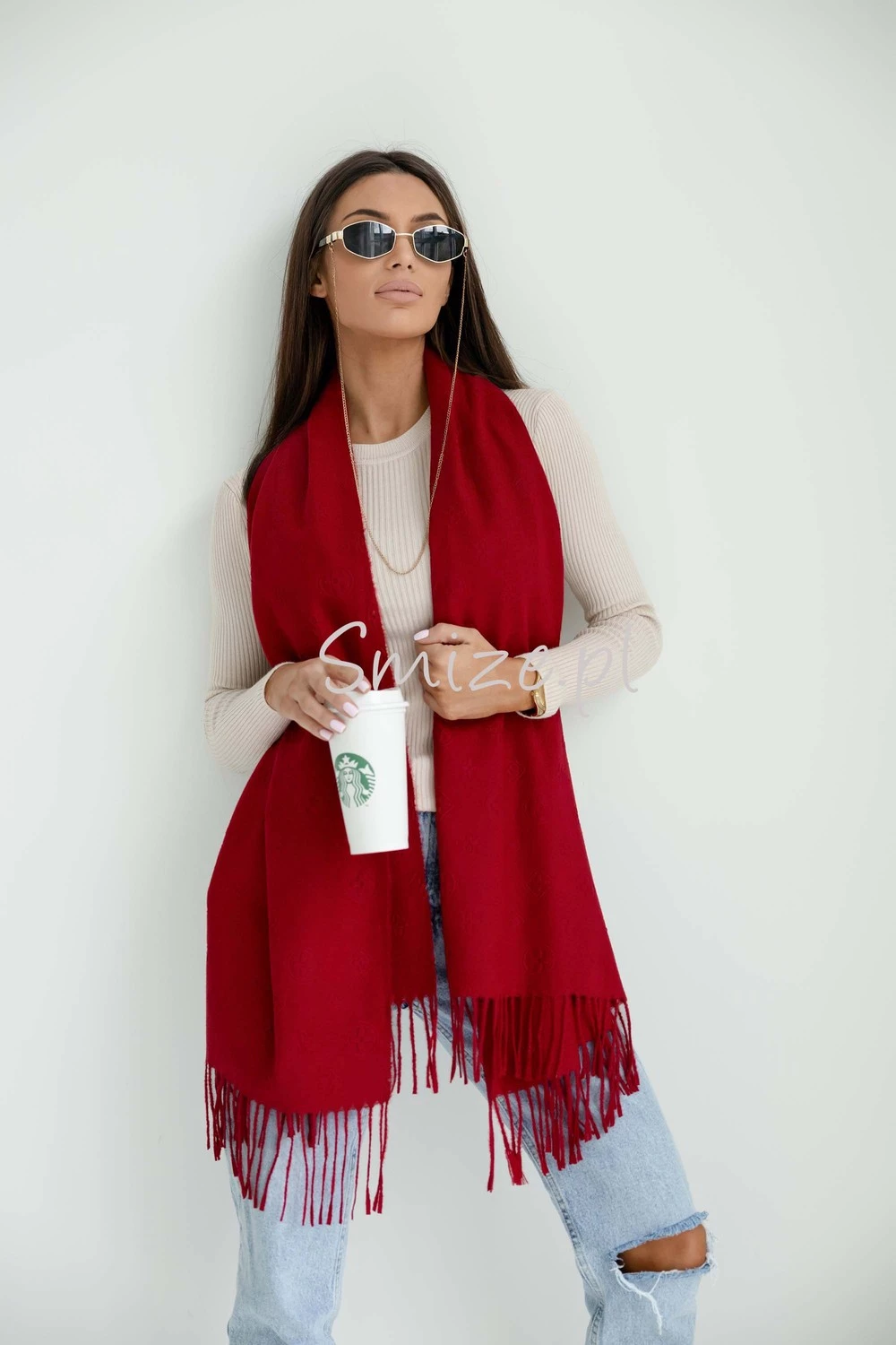Szal damski gładki z tłoczonym wzorem Livi