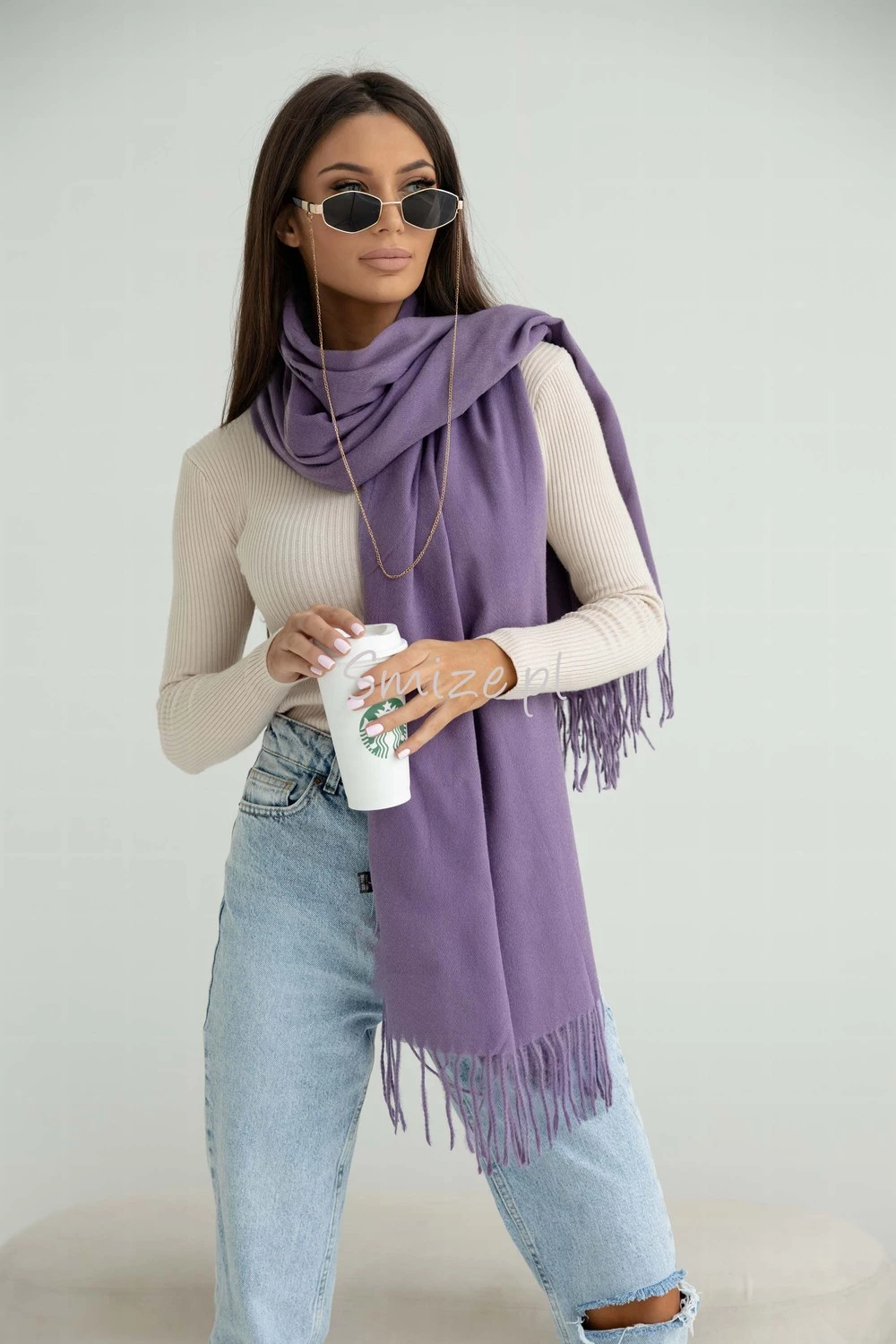 Komplet kaszmirowy amarantowy, szal z czapką CASHMERE