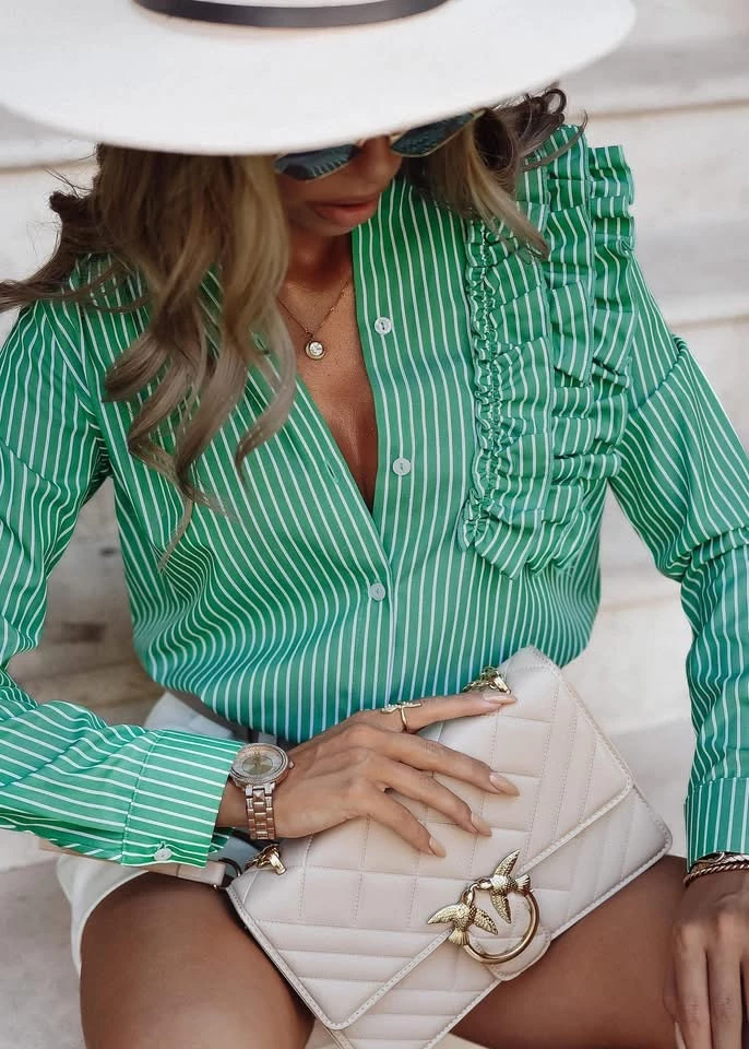 Bawełniana koszula FRILLw paski z falbanami Simplicity