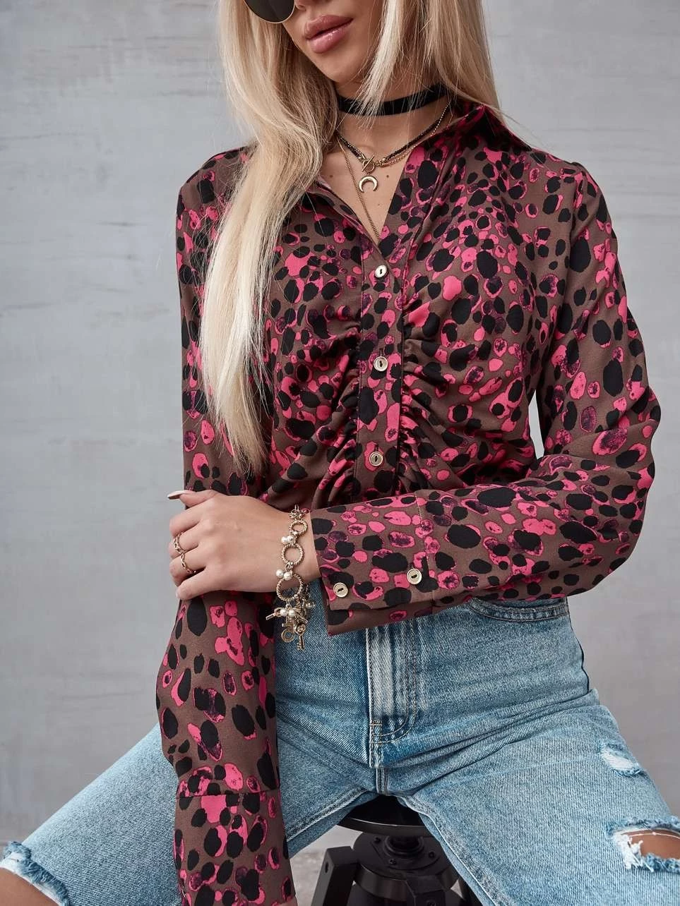 Koszula w panterkę CELINE brąz/fuksja Cocomore