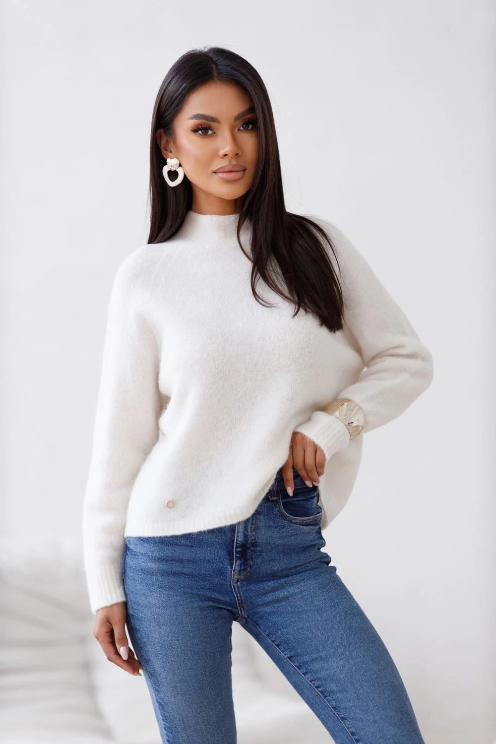 Sweter z półgolfem DAFNE śmietankowy, baby alpaka i wełna z merynosa Madame Sue