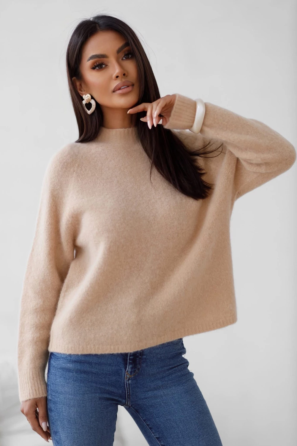Sweter z półgolfem DAFNE camel, baby alpaka i wełna z merynosa Madame Sue
