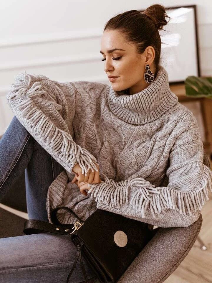 Sweter damski wełniany golf JOSE Madame Sue, ciemny szary
