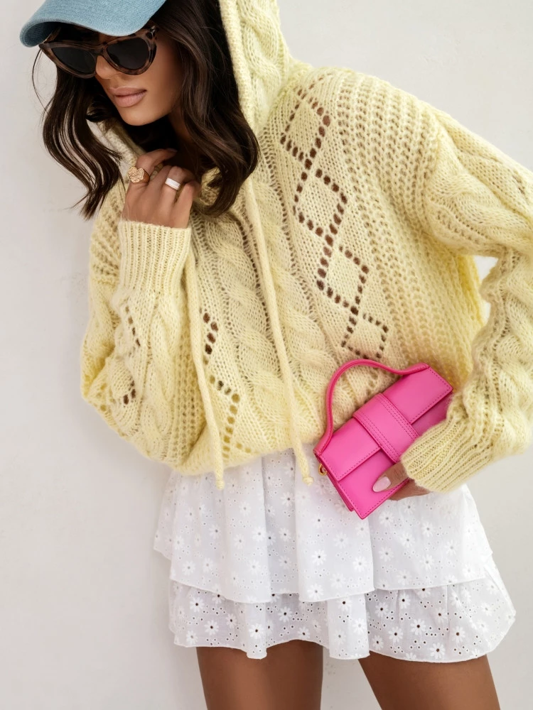 Ażurowy Sweter z kapturem CLYDE Cocomore
