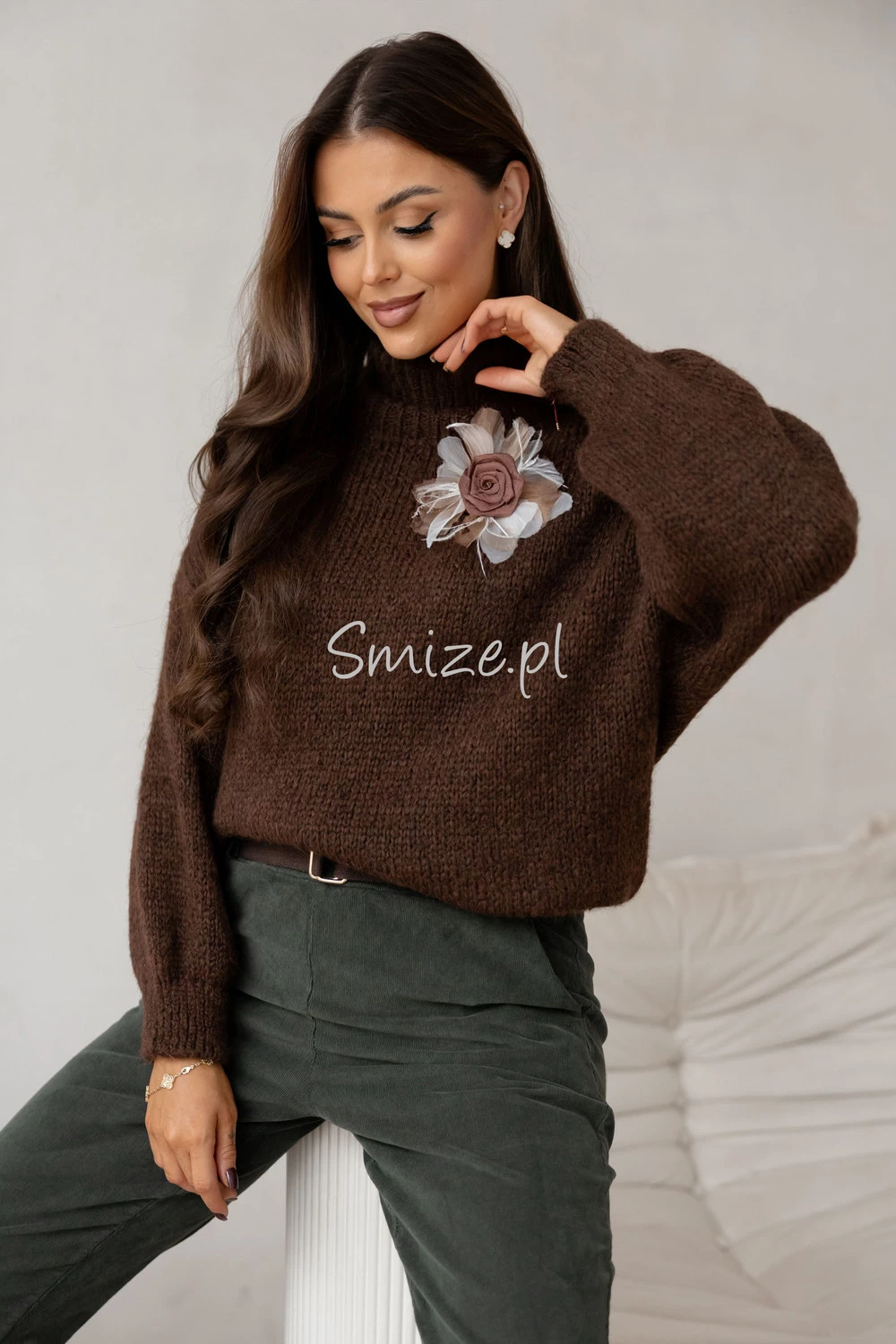 Sweter KARLA baby alpaka Madame Sue, czekoladowy