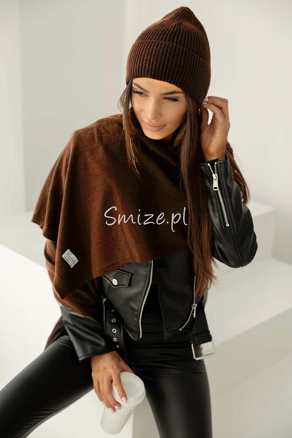 Komplet kaszmirowy brąz, szal z czapką CASHMERE