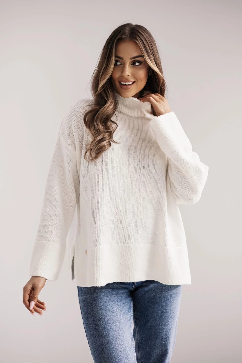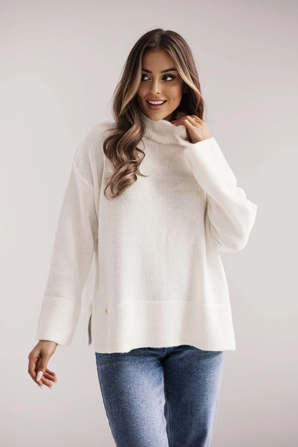 Wełniany sweter damski z moherem CHARLOTTE z golfem Madame Sue