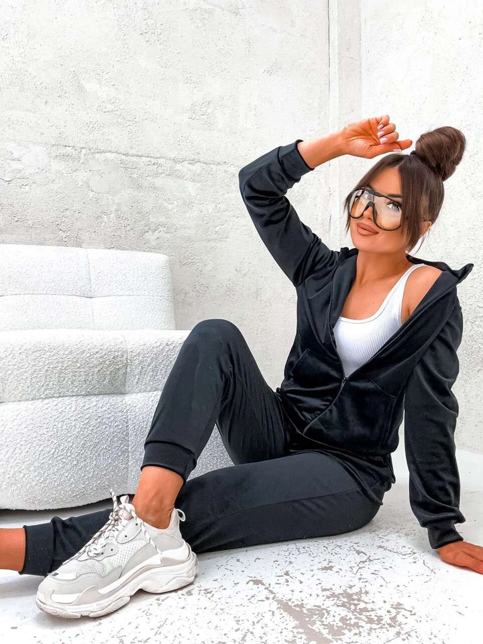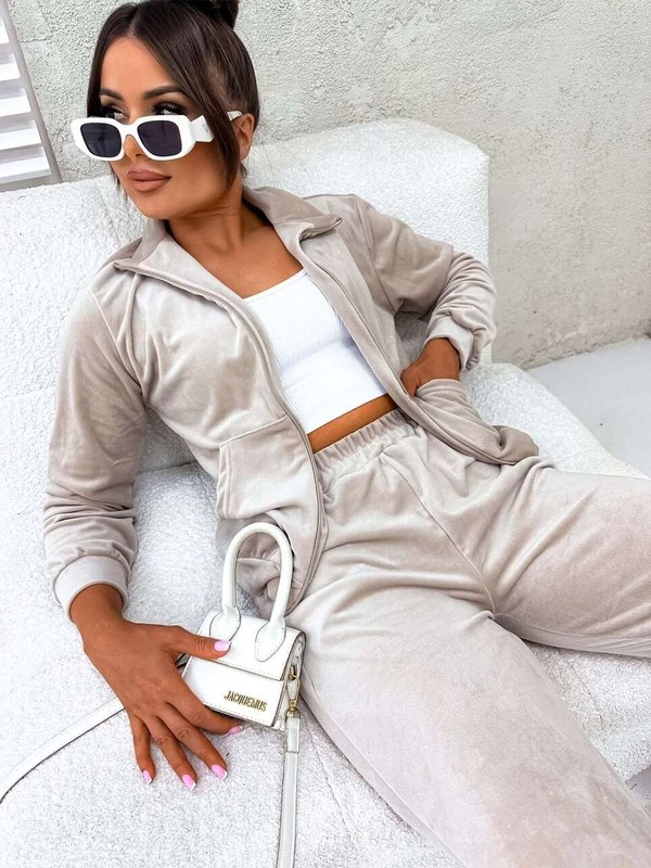 Welurowy komplet dresowy z rozpinaną bluzą bez kaptura Classy